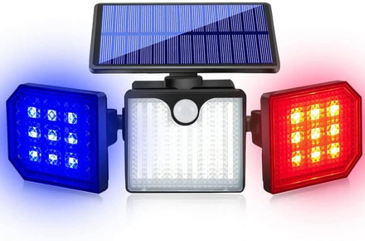 Aolyty Solar Motion Sensor Lights - IP65 Waterproof Solar Strobe Wall Lights with White, Red & Blue Flashing for Patio & Yard