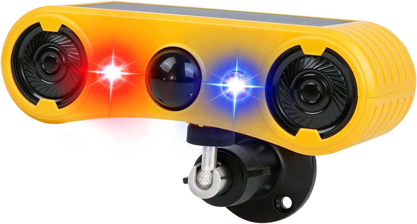 129dB 13 Sound: Built in 13 sounds up to 129 decibel, when motion is detected(sensing distance 5-8meters), 13 sounds play in a loop, ensuring effective warning and timely deterring "Unwelcome visitors"
