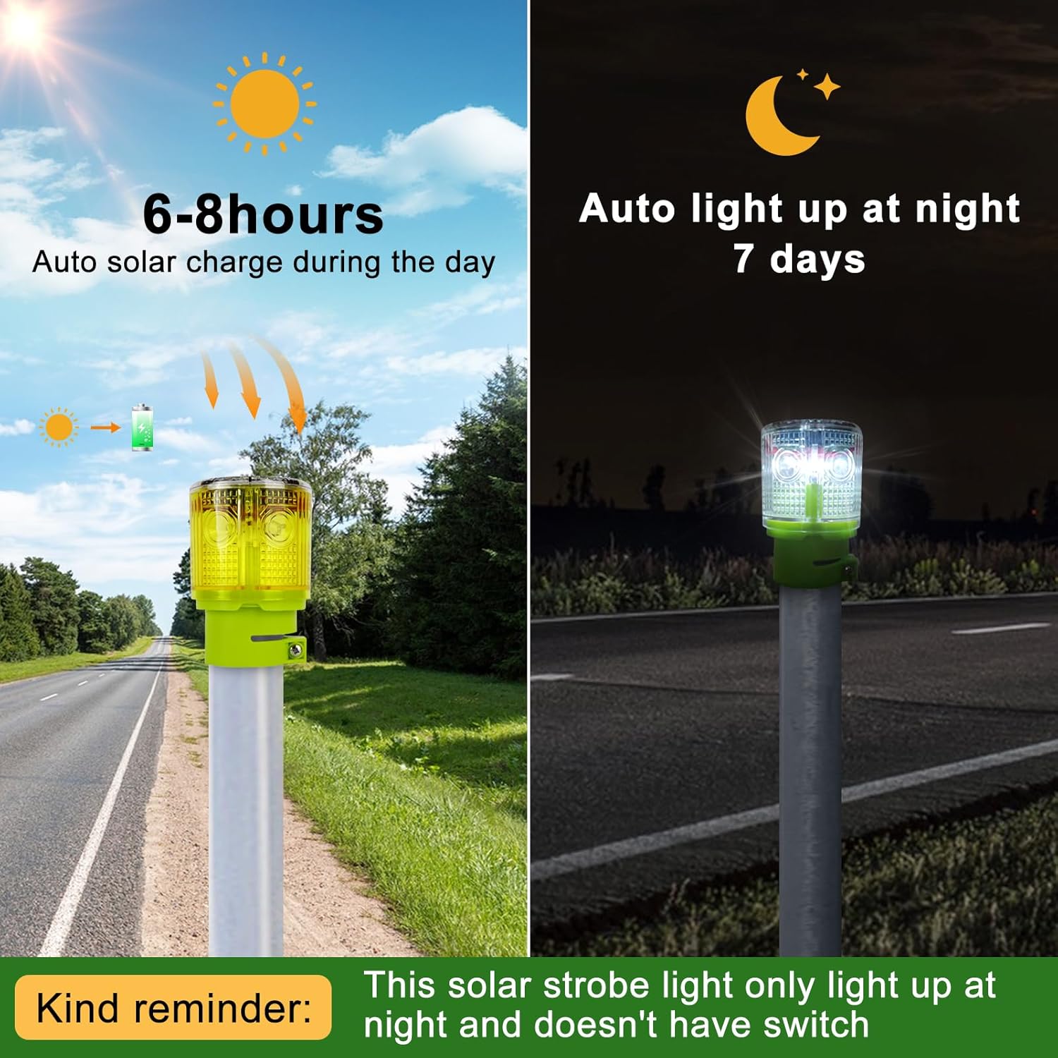 【SOLAR POWERED – NO ELECTRIC BILL】Once you install the light, you can just leave it alone. It absorb sunlight at daytime and automatically flash at night and darkness, no need to turn on the switch or connect wire.