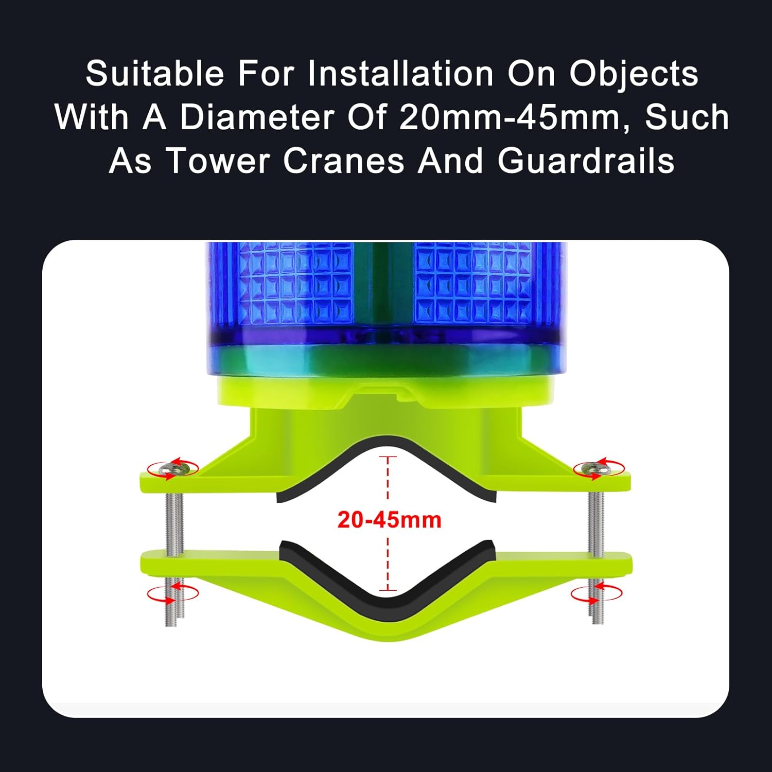 [Installation Size] The screws can be adjusted to fit different installation sizes, suitable for installation on objects with a diameter of 20mm-45mm, such as tower cranes and guardrails