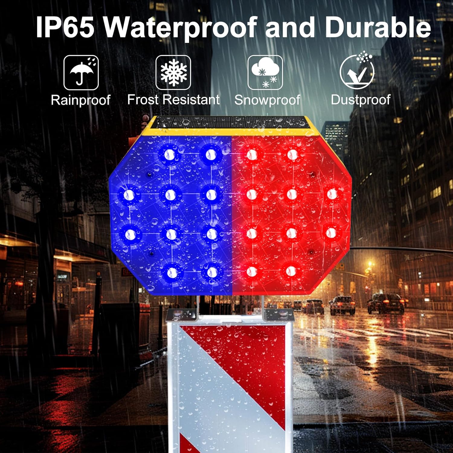 [IP65 Waterproof] Constructed from high-quality ABS material, our solar warning strobe light is waterproof and durable, designed to withstand harsh weather conditions, including fog, heavy rain, blizzards